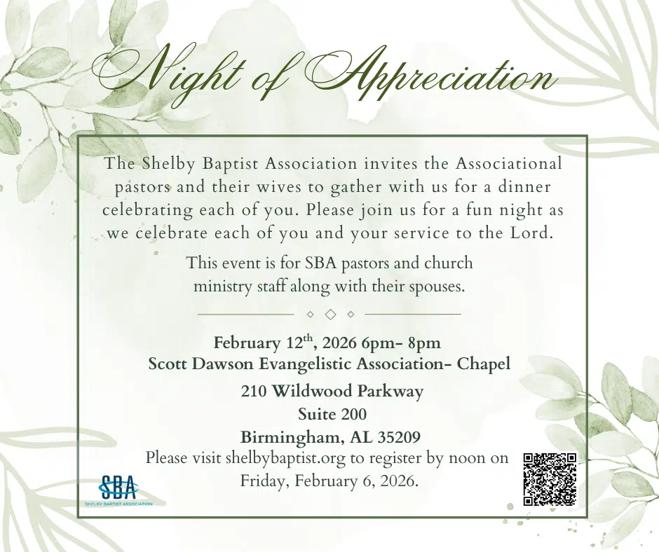 This event is for SBA pastors and church ministry staff along with their spouses.